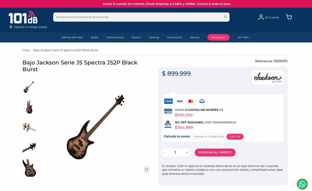 101dB Argentina es una tienda online especializada en audio profesional, instrumentos musicales y pequeños electrodomésticos. Se destaca por ofrecer financiación en hasta 9 cuotas sin interés, envíos a todo el país, y entrega express en 24 hs para CABA y GBA.